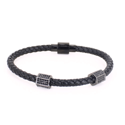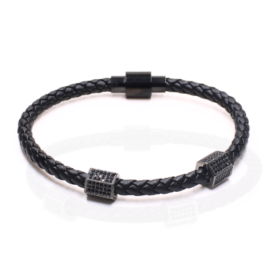 Ανδρικό Βραχιόλι Μαύρο με Μαύρο Βαρελάκι H202