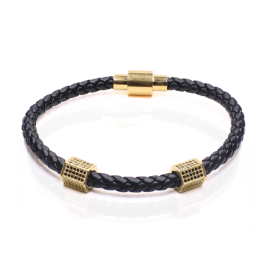Ανδρικό Βραχιόλι Μαύρο με Χρυσό Βαρελάκι H204