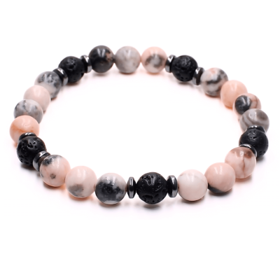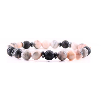 Ανδρικό Βραχιόλι με Pink Zebra Stone + Lava stone YY111