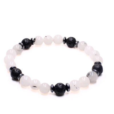Ανδρικό Βραχιόλι με Black Rutilated Quartz + Lava stone YY117