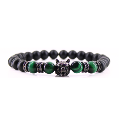 Ανδρικό Βραχιόλι με Black Mate Agate + Green Tiger Eye YY134