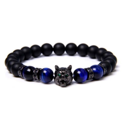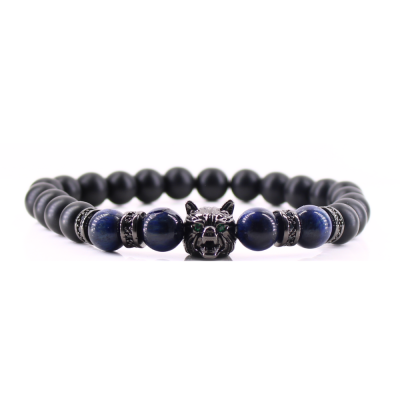 Ανδρικό Βραχιόλι με Black Mate Agate + Blue Tiger Eye YY135