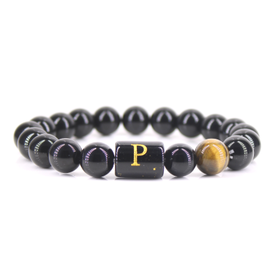 Βραχιόλι με Ορυκτές Πέτρες Black Obsidian & Tiger Eye Μονόγραμμα P
